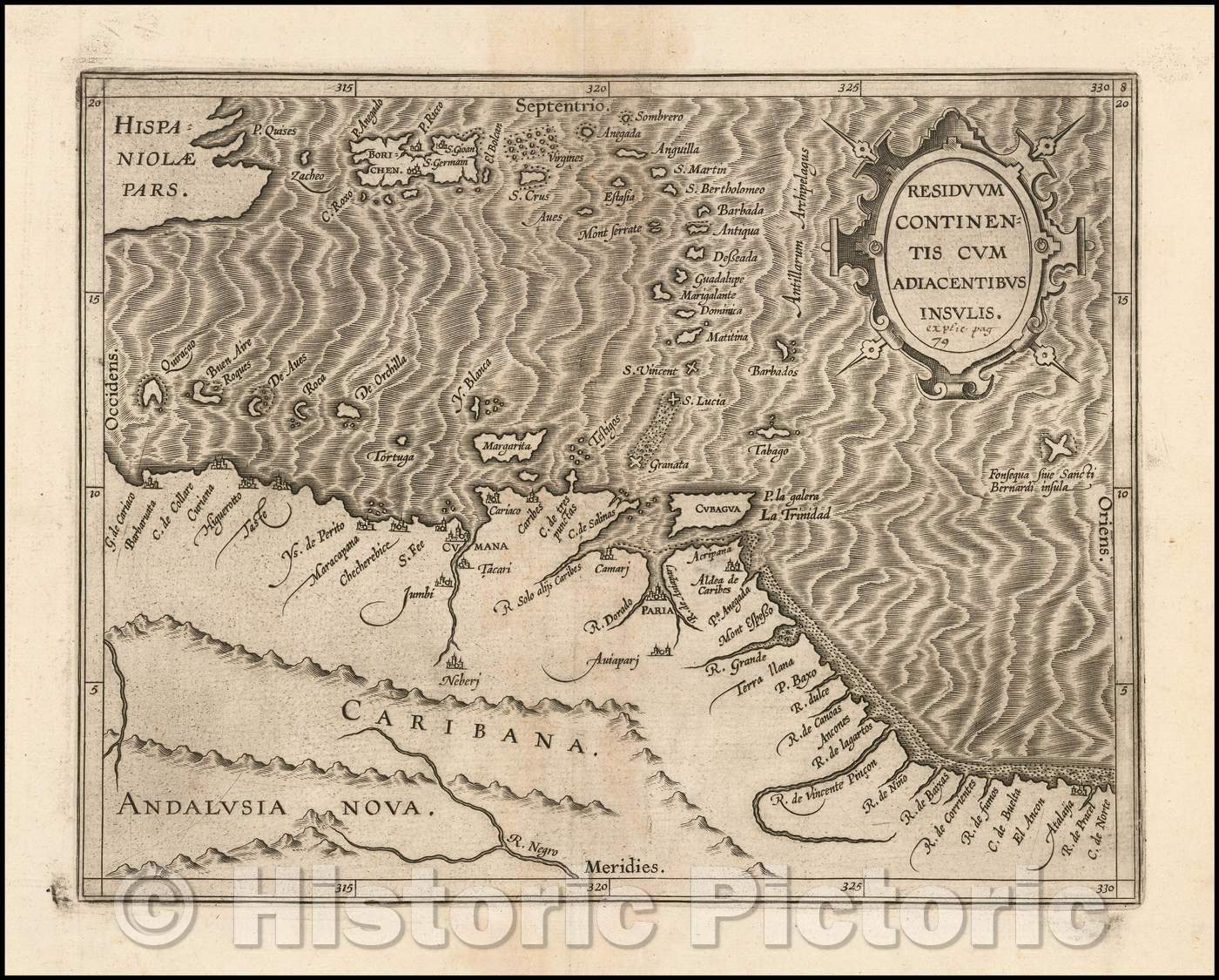 • .Historic Map - Venezuela and Caribbean/Residuum Continentis Cum Adiacentibus Insulis. :: (Venezuela and Caribbean) Adiacentibus islands, 1597 - Vintage Wall Art