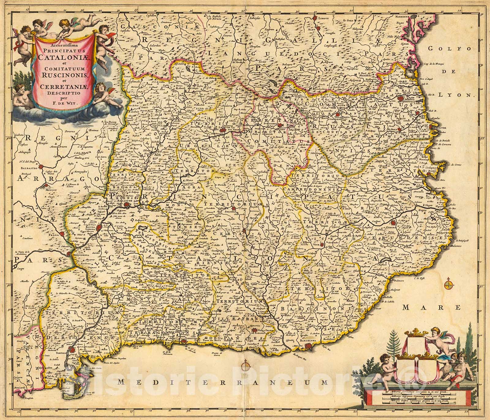 Historic Map : Accuratissima principatus Cataloniae, 1690, Vintage Wall Decor