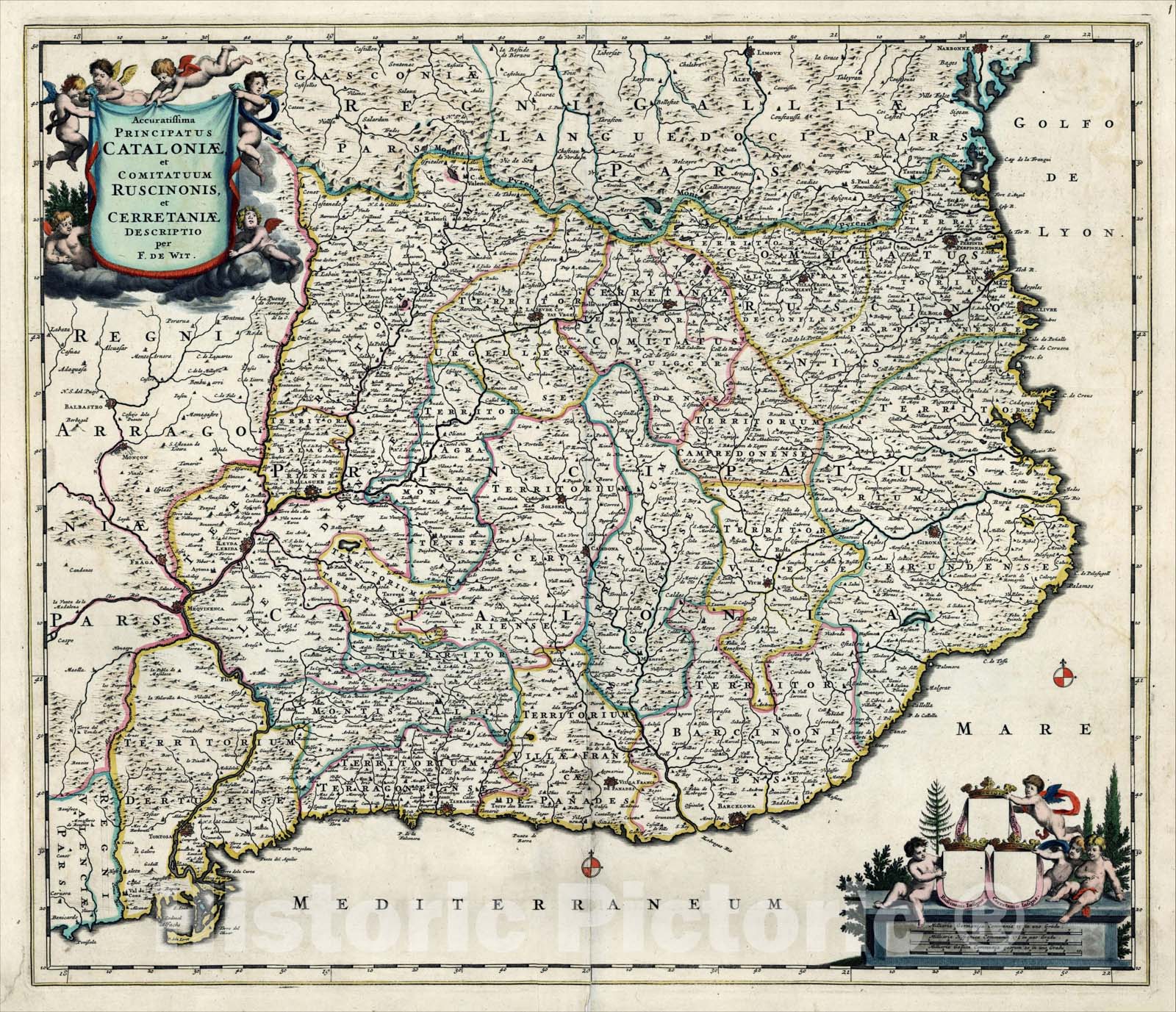 • .Historic Map : Accuratissima Principatus Cataloniae et Comitatuum Ruscinonis et Cerrataniae Descriptio, c1688, , Vintage Wall Art
