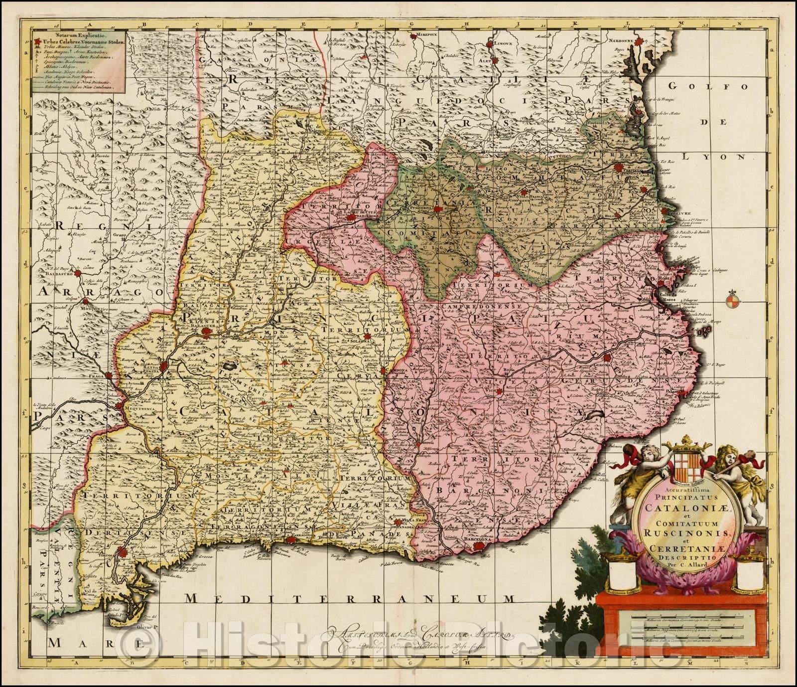 • .Historic Map - Accuratissima Principatus Cataloniae et Comitatuum Ruscinonis et Cerratani :: Cataloniae Ruscinonis and Cerrataniae, 1688 - Vintage Wall Art