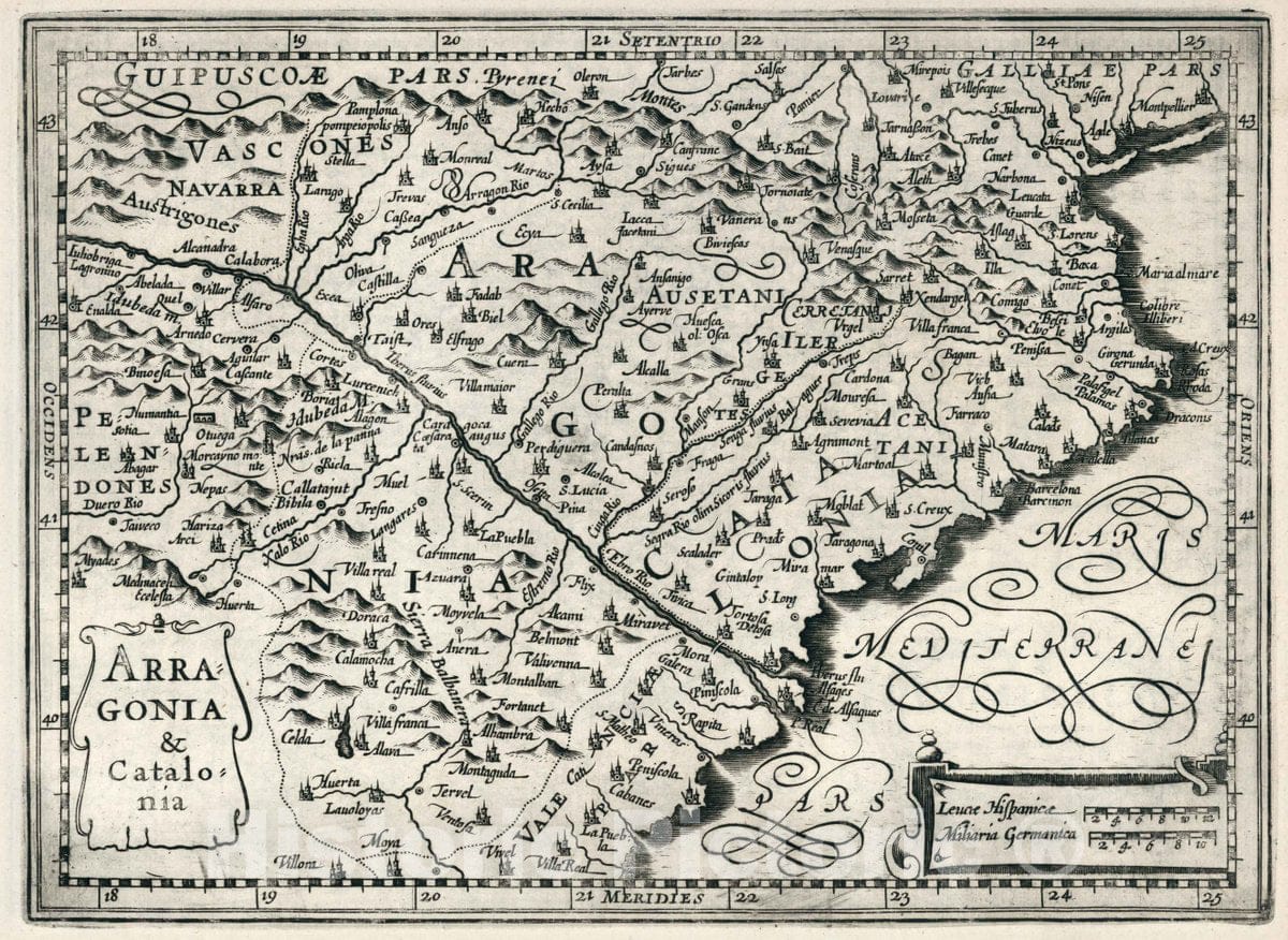 Historic Map : Arragonia & Catalonia. Atlas sive Cosmographicae Meditationes de Fabrica Mundi et fabricati Figura, 1636 Atlas - Vintage Wall Art