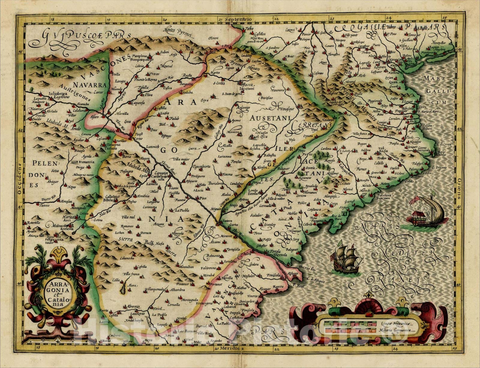 Historic Map : Arragonia et Catalonia, c1606, Michael Mercator, Vintage Wall Art