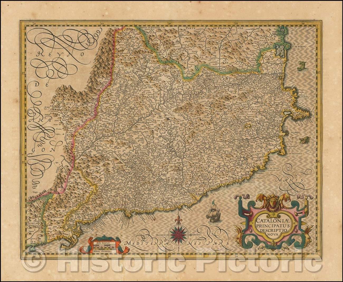 Cataloniae Principatus Descriptio Nova/New government Cataloniae Description, 1619, Jodocus Hondius