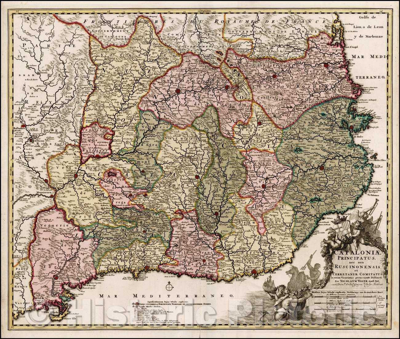 Historic Map - Cataloniae Principatus et Ruscinonensi et Cerretaniae in eorum Vicariatus peraccurate Distincti, 1690, Nicolaes Visscher I v2
