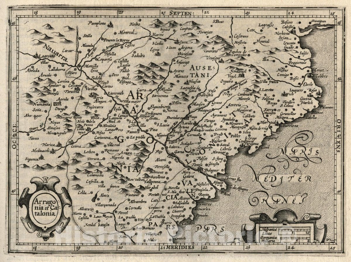 Historic Map : Spain, Arragonia et Catalonia. (to accompany) Atlas Minor Gerardi Mercatoris, 1607 Atlas , Vintage Wall Art