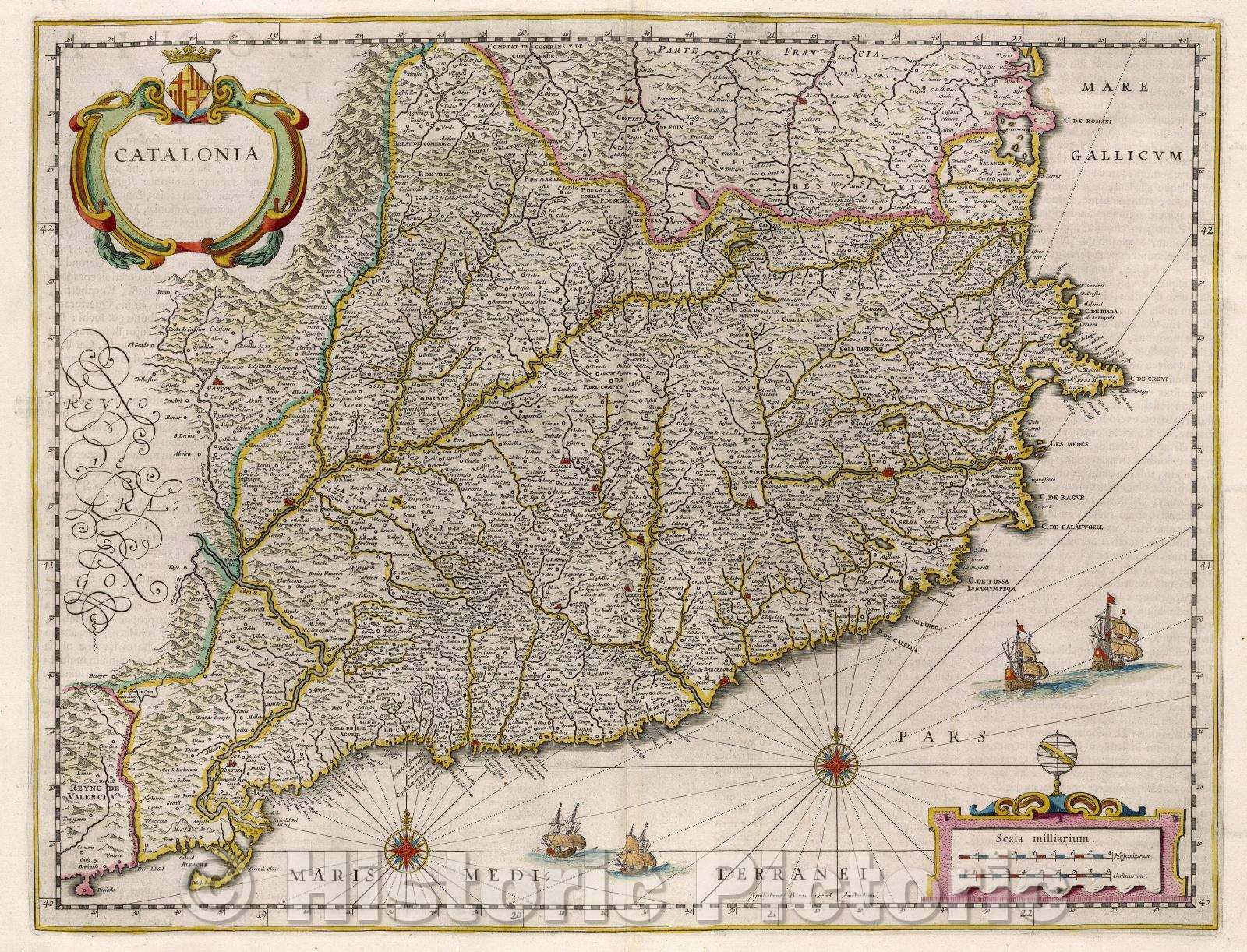 Historic Map : Catalonia, c. 1664 , Vintage Wall Art