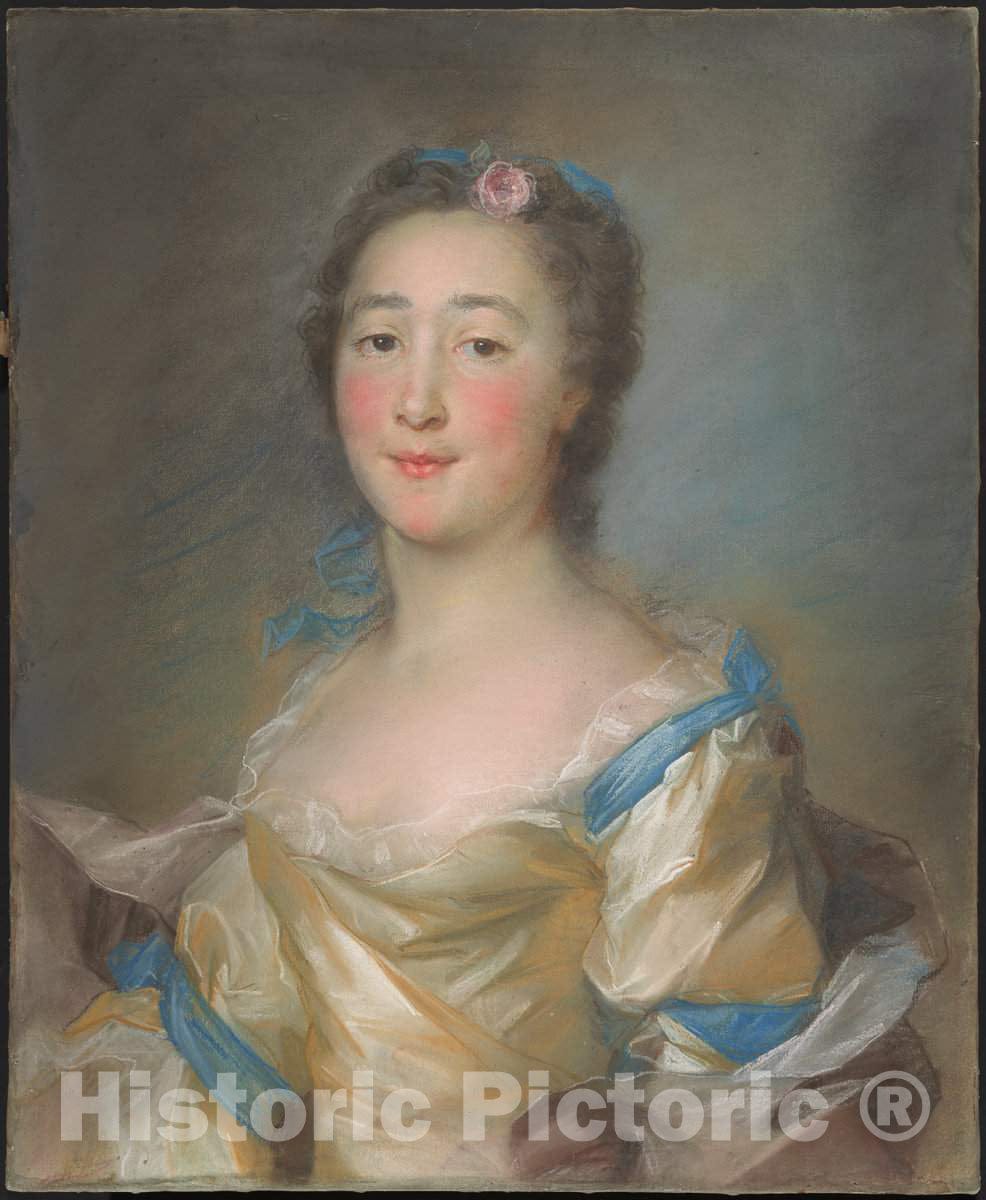 Art Print : Baptiste Perronneau, A Young Lady in a Yellow Gown with Blue Ribbons, c. 1767 - Vintage Wall Art