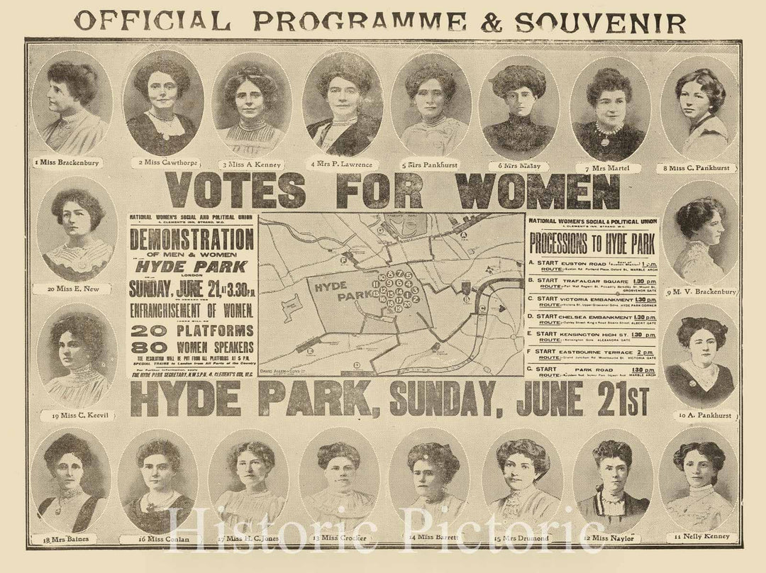 Historic Map : Suffragette March Map, 1908, Vintage Wall Art