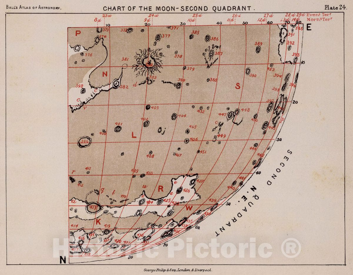 Historic Map : 1892 Celestial Atlas - 24. Chart of The Moon - Second Quadrant. - Vintage Wall Art