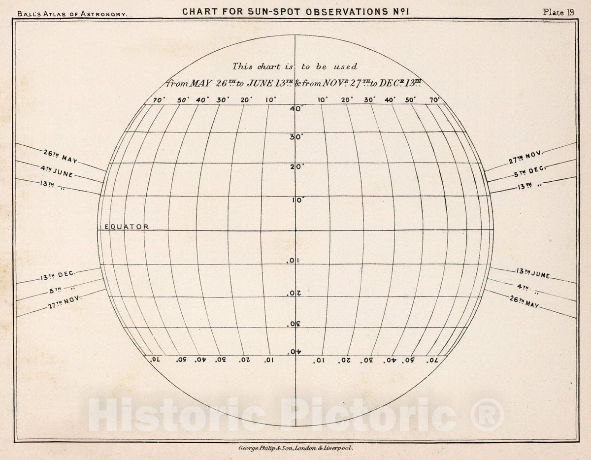 19. Chart for Sun Spot Observations No. 1, 1892 Celestial Atlas