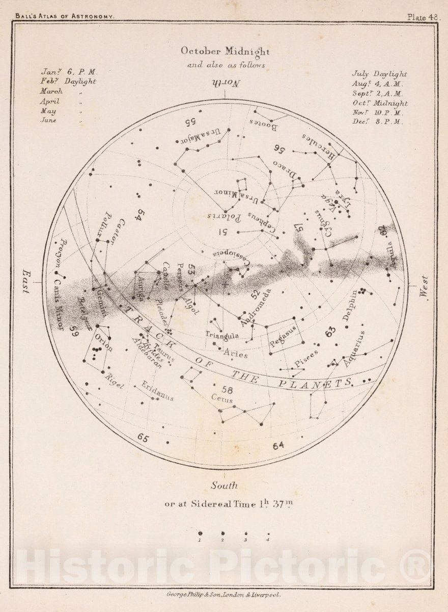 48. Stars: October Midnight, 1892 Celestial Atlas