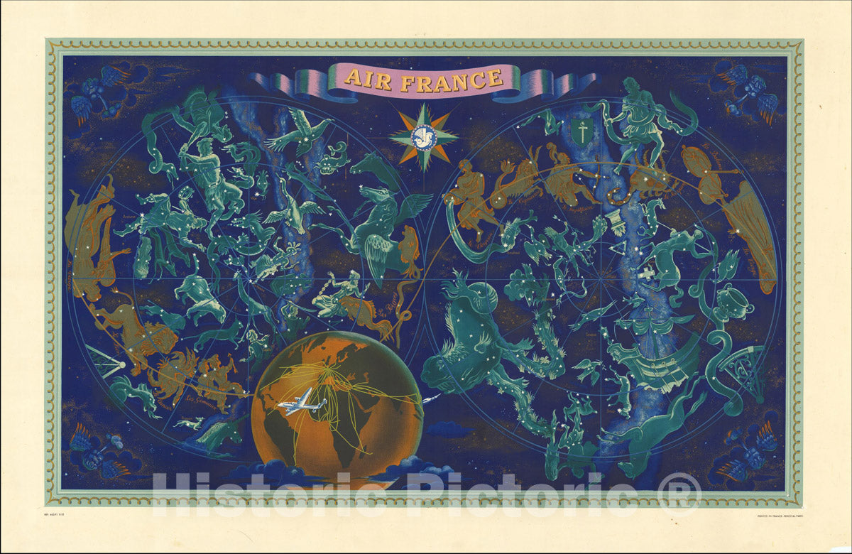 Historic Map : [Celestial Map] Air France, 1959, Lucien Boucher, Vintage Wall Art