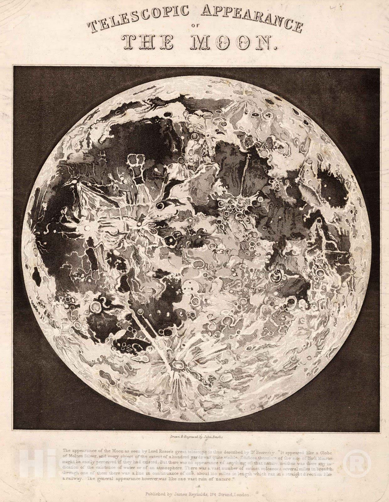 Historic Map : Celestial Atlas - 1851 Telescopic appearance of the Moon - Vintage Wall Art