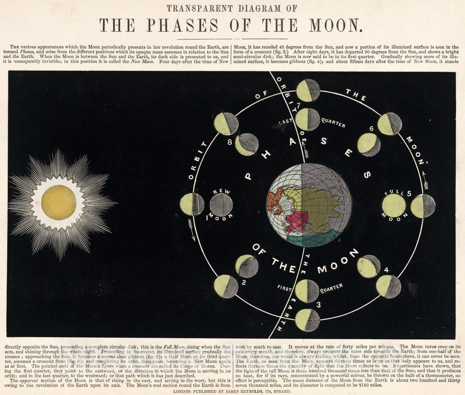 Celestial Atlas - 1851 Transparent diagram of the phases of the Moon