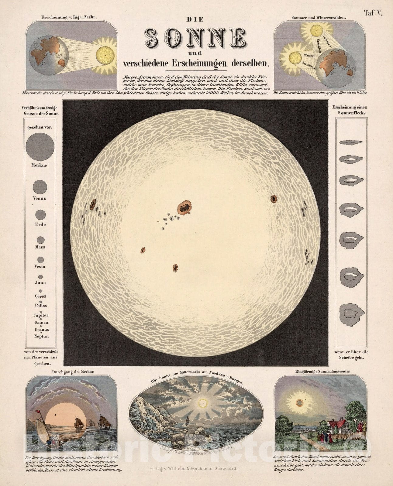 Historic Map : Celestial Atlas Map, Taf. V. The sun and different occurrences of the same. 1855 - Vintage Wall Art