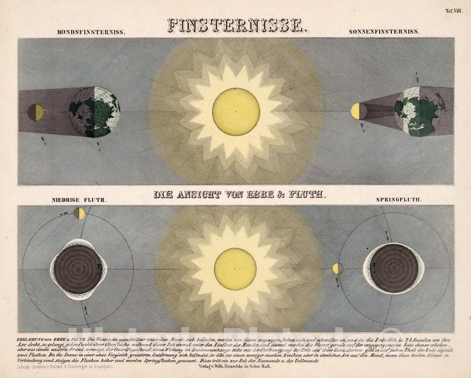 Historic Map : Celestial Atlas Map, Taf. VIII. Eclipses. The view of the ebb & flood. 1855 - Vintage Wall Art