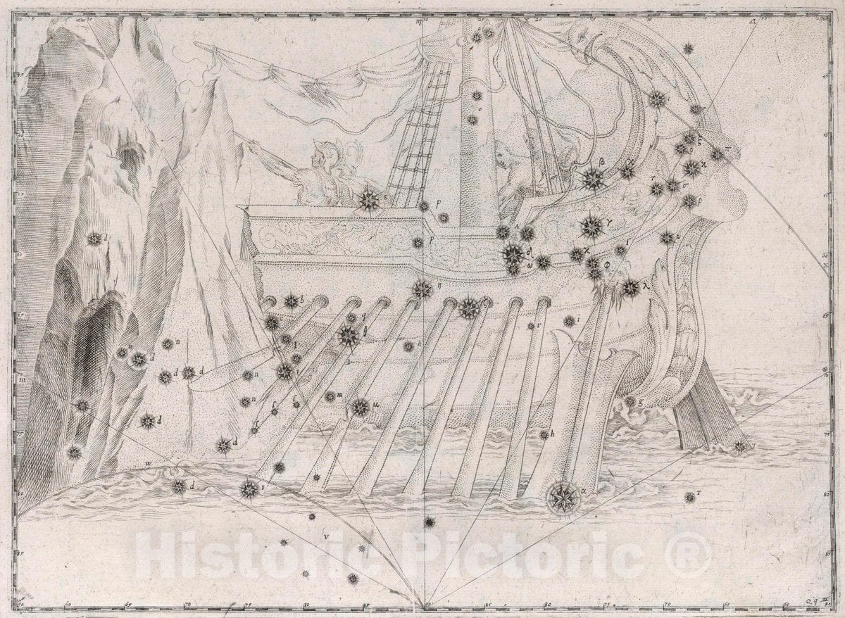 Historic Map : Constellation: Argo Navis, Ship, 1655 Celestial Atlas - Vintage Wall Art