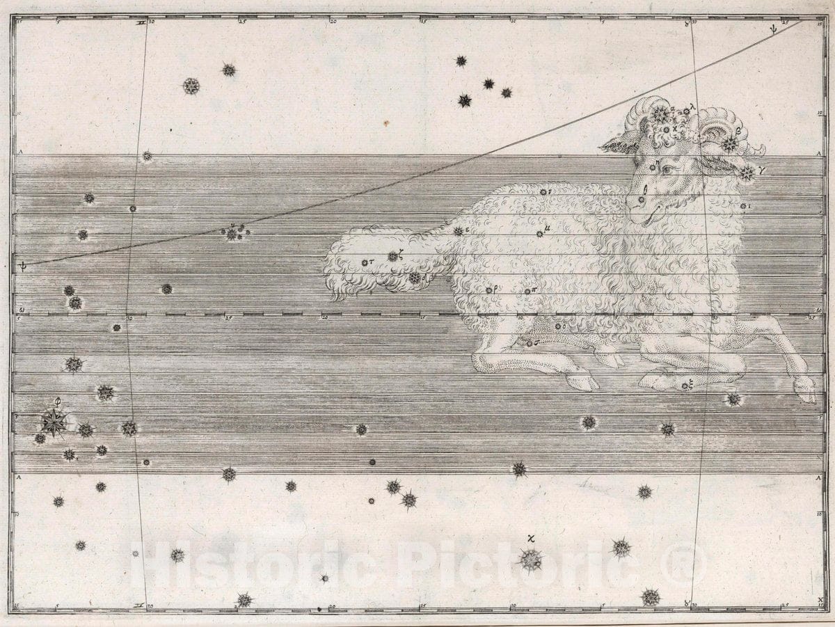 Historic Map : Constellation: Aries, The Ram, 1655 Celestial Atlas - Vintage Wall Art