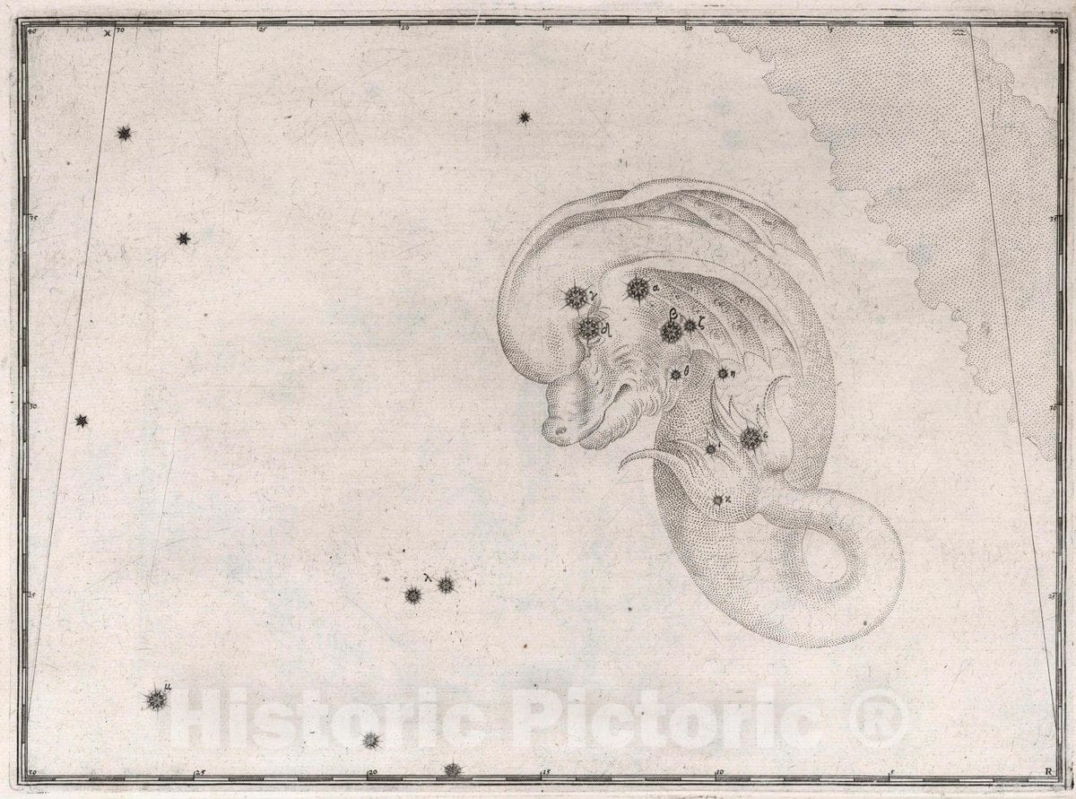 Historic Map : Constellation: Delphinus, a Dolphin, 1655 Celestial Atlas - Vintage Wall Art