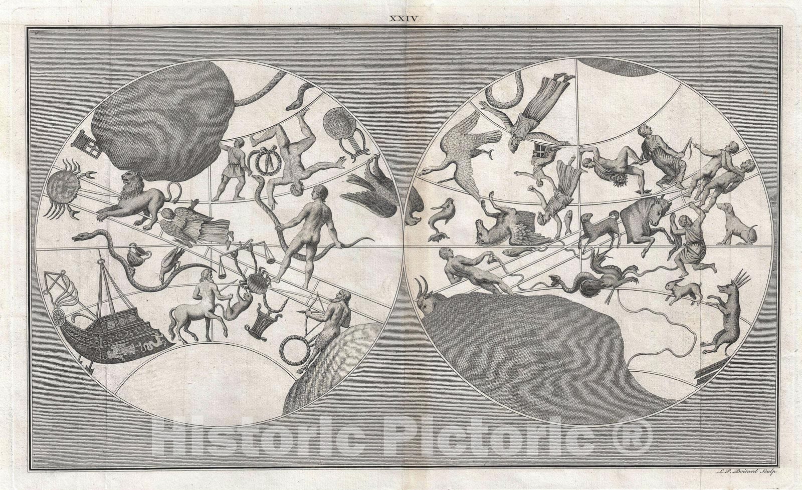 Historic Map : The Constellations of The Zodiac, Boitard Celestial, 1747, Vintage Wall Art