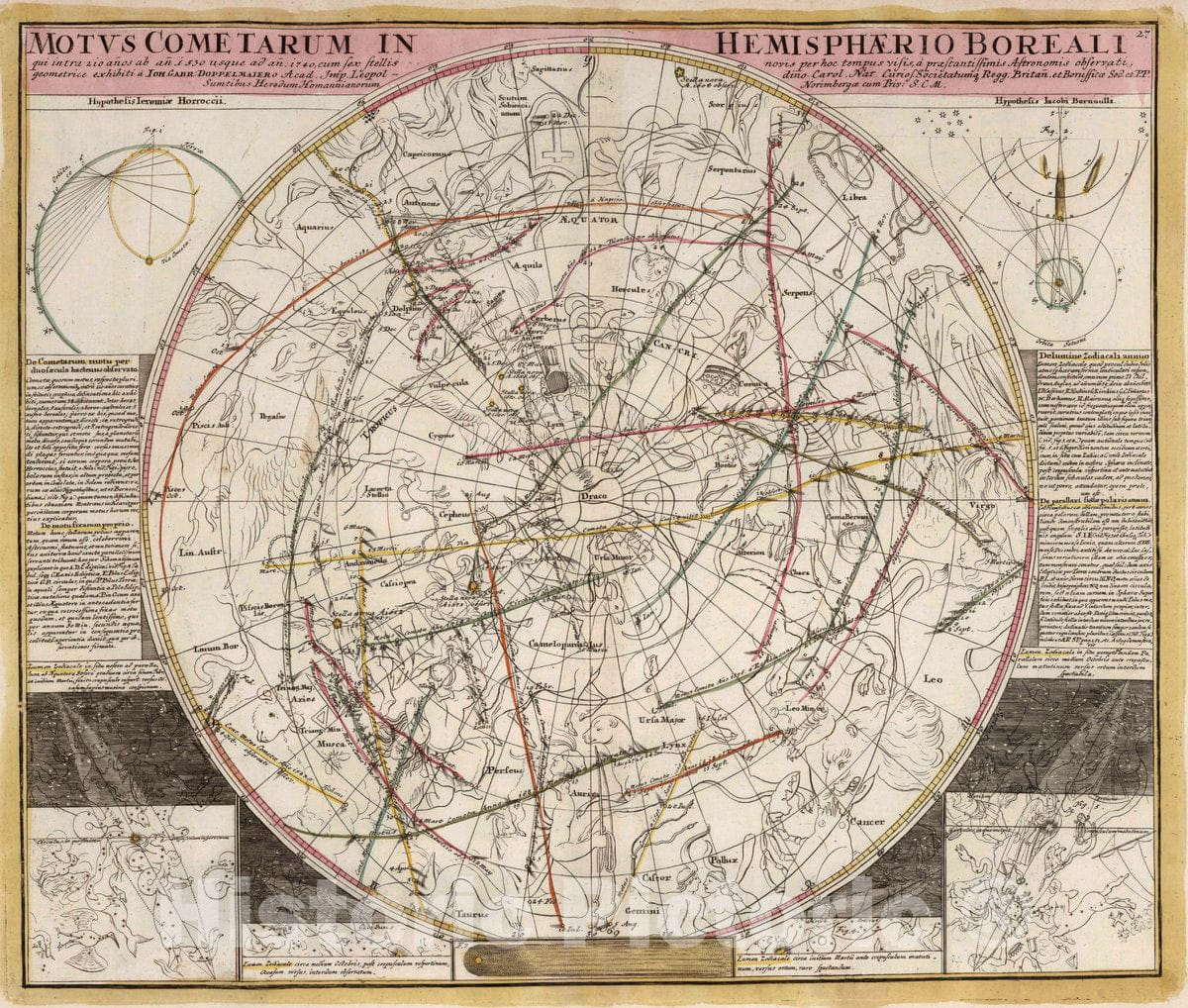 Historic Map : Motus Cometarum in Hemisphaerio Boreali, 1742 Celestial Atlas - Vintage Wall Art