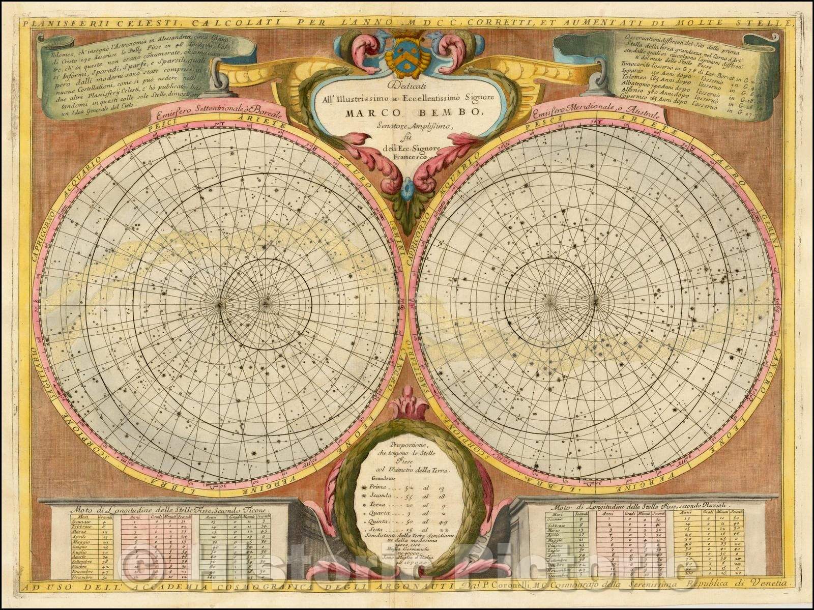 Historic Map - Planisferii Celesti, Calcolati Per L'Anno MDCC, Corretti/Double hemisphere celestial Map, scientific depiction of the heavens, 1691 - Vintage Wall Art