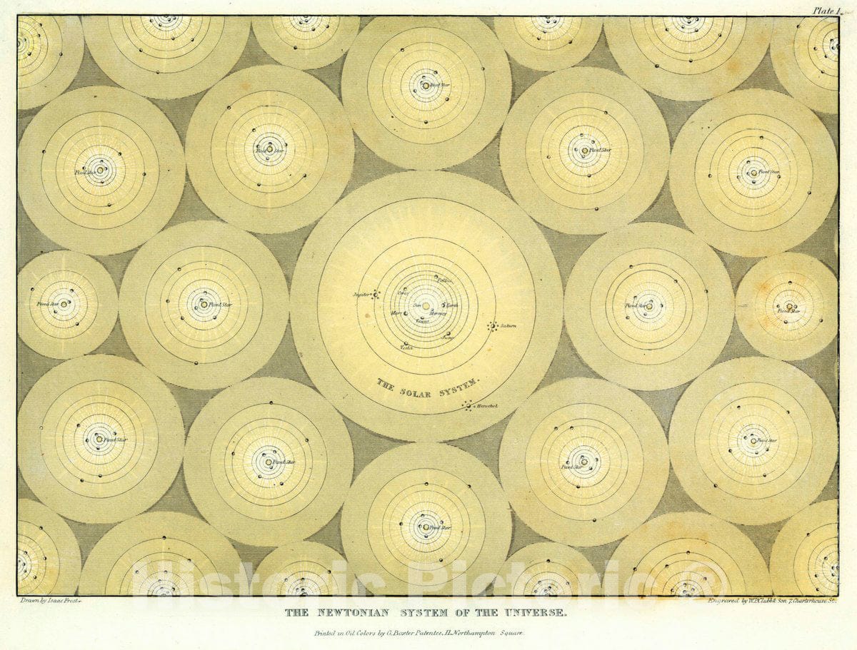 Historic Map : Plate 1: The Newtonian System of The Universe, 1846 Celestial Map - Vintage Wall Art