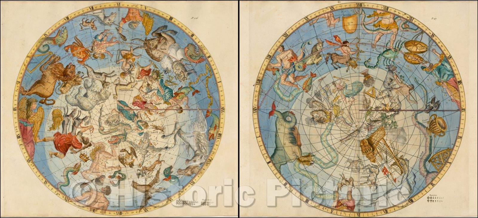 Historic Map - Southern Celestial Hemisphere and Northern Celestial Hemisphere, 1728, John Flamsteed - Vintage Wall Art