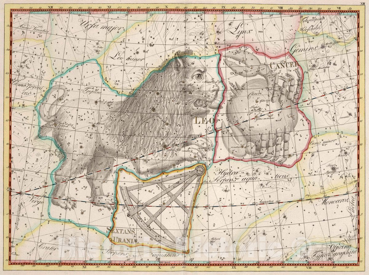 • .Historic Map : XIII. Cancer. Coelum Stellatum, 1801 Celestial Atlas - Vintage Wall Art