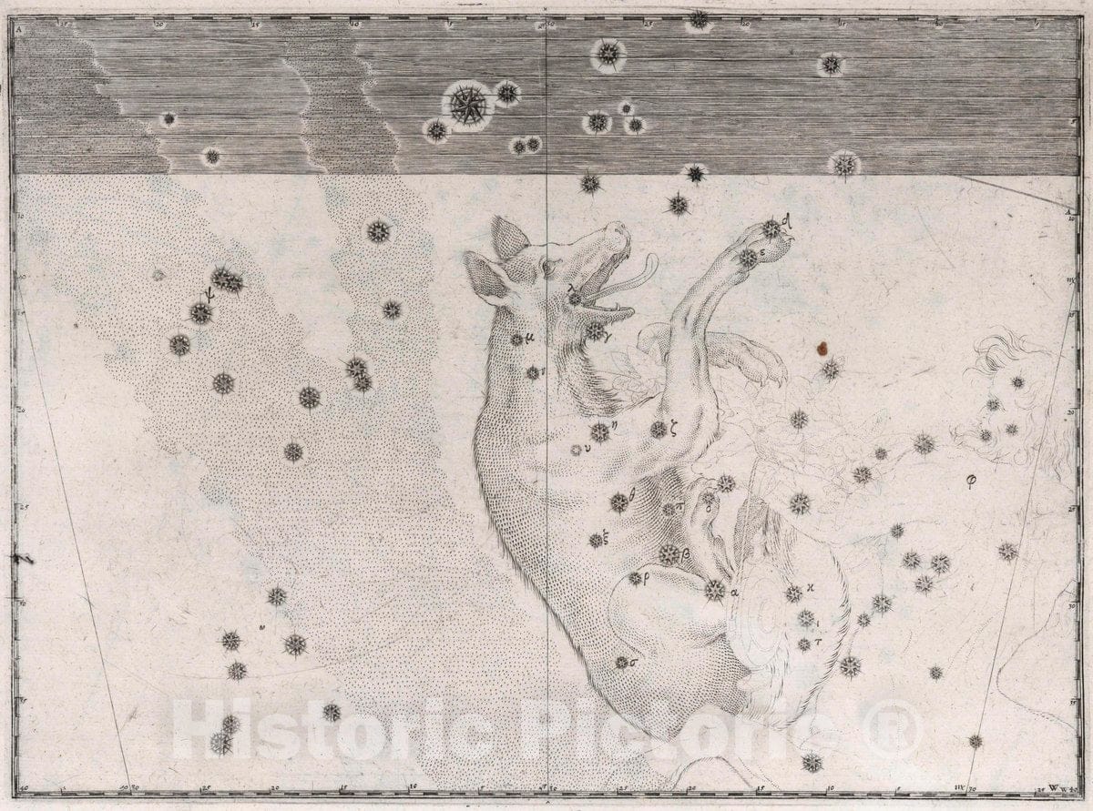 Historic Wall Map : Constellation: Lupus, The Wolf, 1655 Celestial Atlas - Vintage Wall Art
