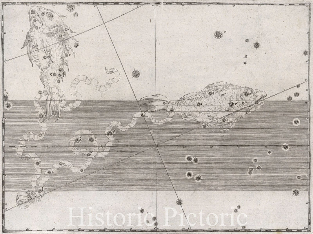 Historic Map : Constellation: Pisces, The Fish, 1655 Celestial Atlas - Vintage Wall Art
