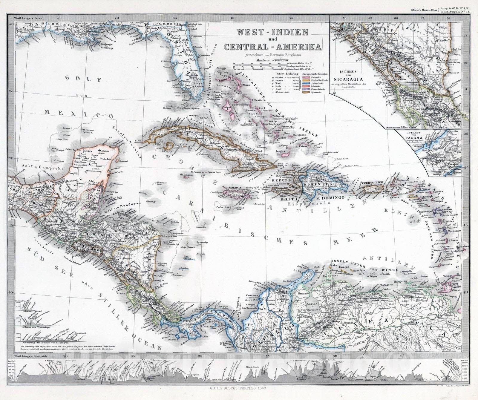 • .Historic Map : 1869 West-Indien und Central-Amerika. (West Indies and Central America). - Vintage Wall Art