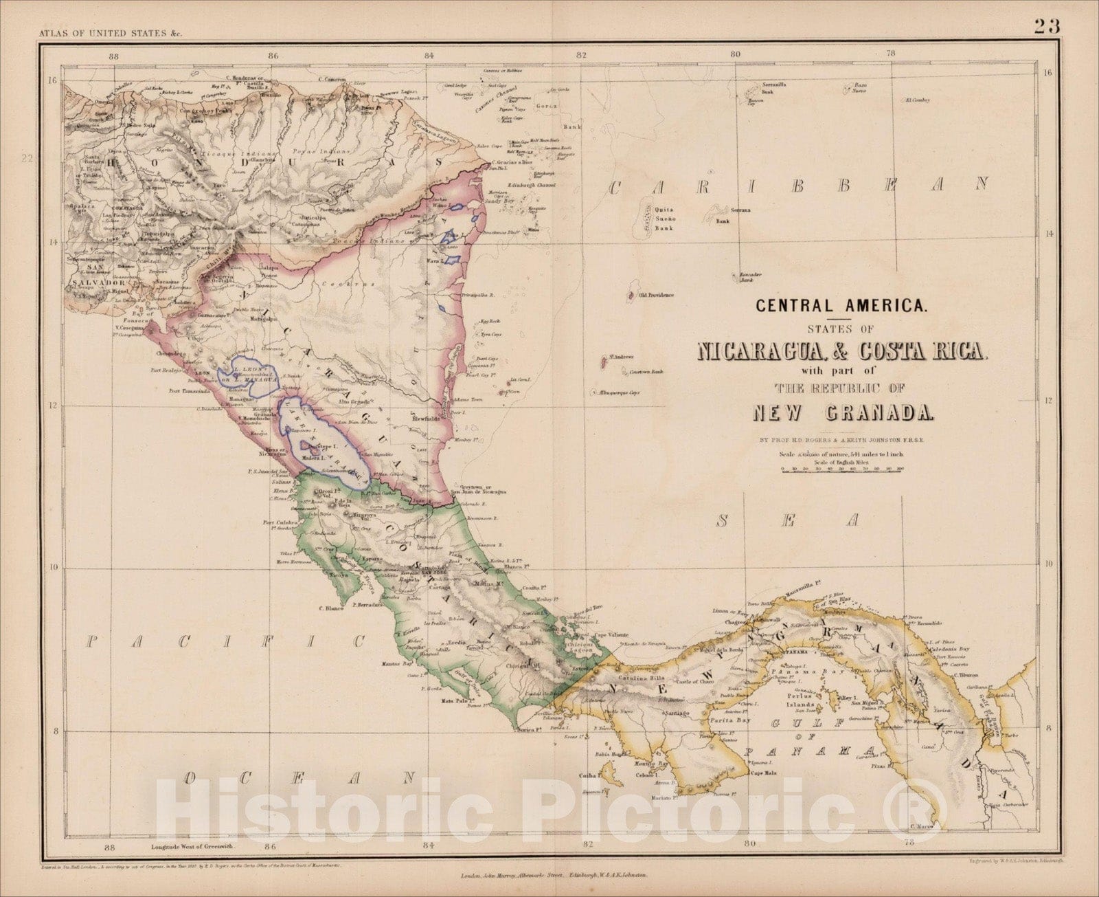 Historic Map : Central America -- States of Nicaragua & Costa Rica with part of the Republic of New Granada, 1857, Henry Darwin Rogers, Vintage Wall Art