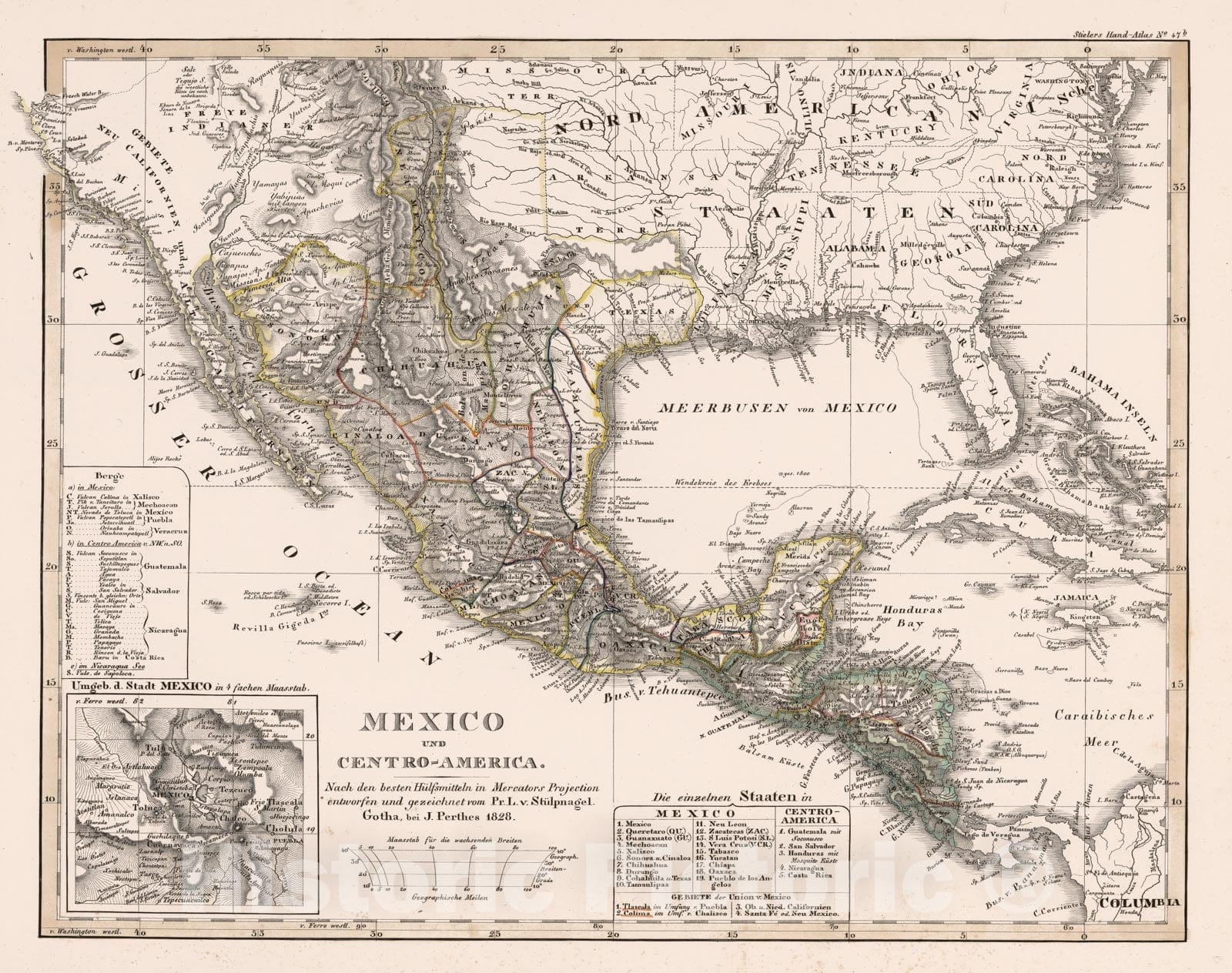 Mexico, , Central America 1828 Mexico und Centro-America, 1828 , Vintage Wall Art