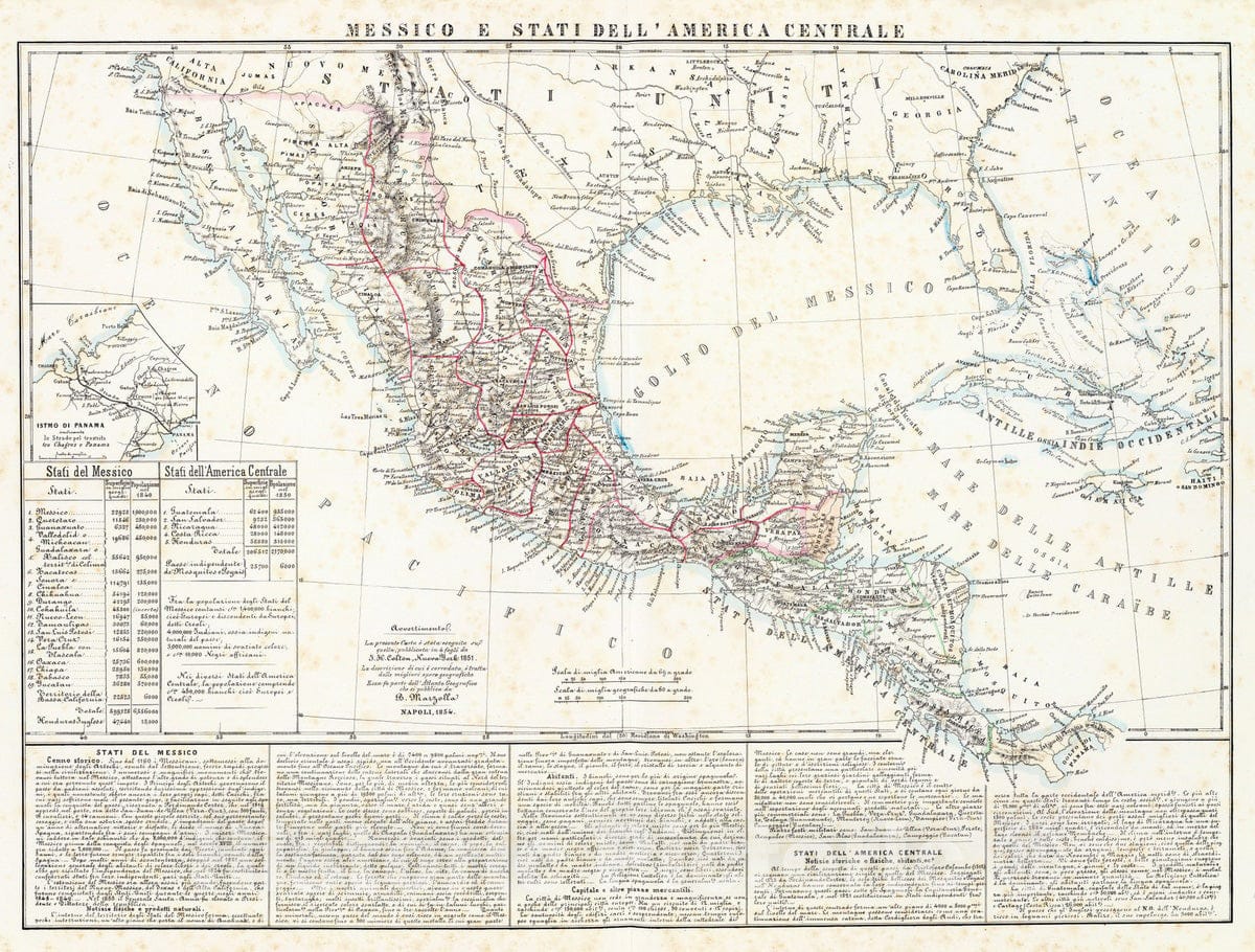 Mexico; Panama, , Central America 1854 Messico e Stati dell'America Centrale; Istmo di Panama. , Vintage Wall Art