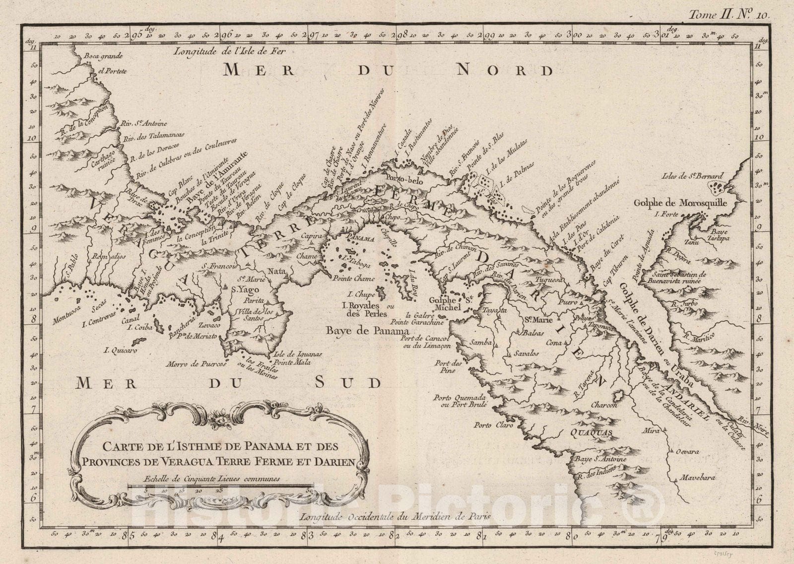 Panama; Colombia; Venezuela, , Central America 1764 Carte de I'isthme de Panama et des provinces de Veragua, Terre Ferme et Darien , Vintage Wall Art