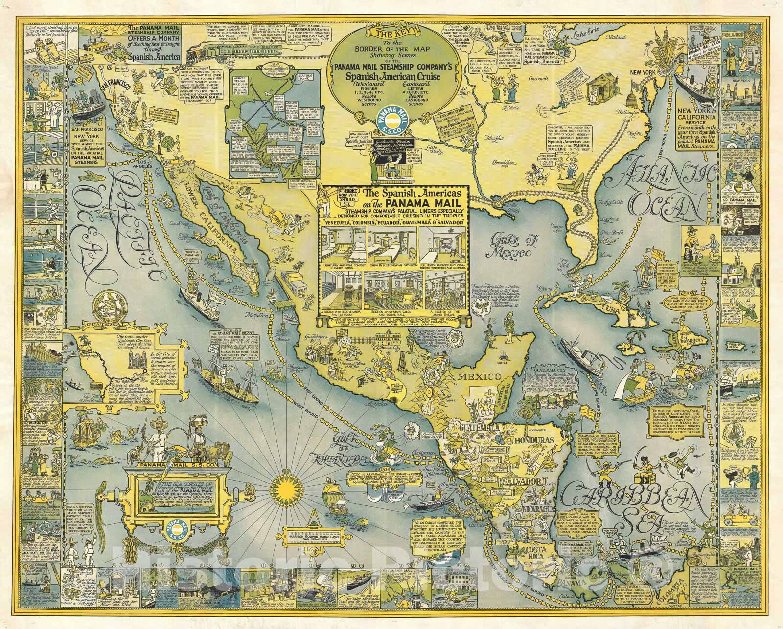 Historic Map : Pictorial Map of North America and Central America, Godwin, 1928, Vintage Wall Art
