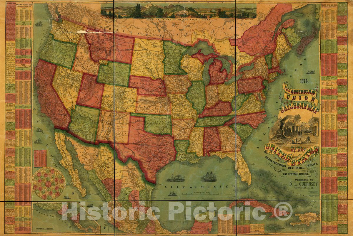 • Historic 1874 Map - The American Union Railroad map of The United States, British Possessions. West Indies, Mexico, and Central America.