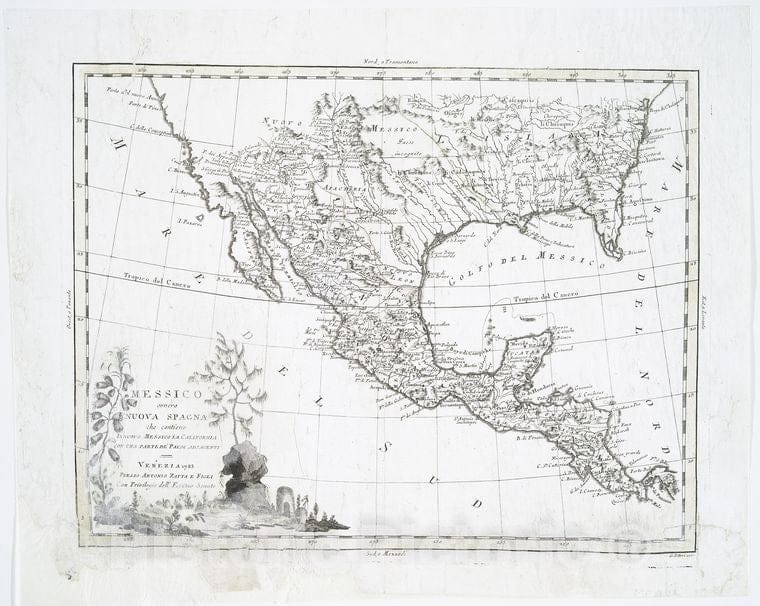 Historic Map - 1785 Central America, Messico, Ouvero Nuova-Spagna : Che Contiene Il Nuovo Messico, La California Con Una Parte De Paesi Adjacenti