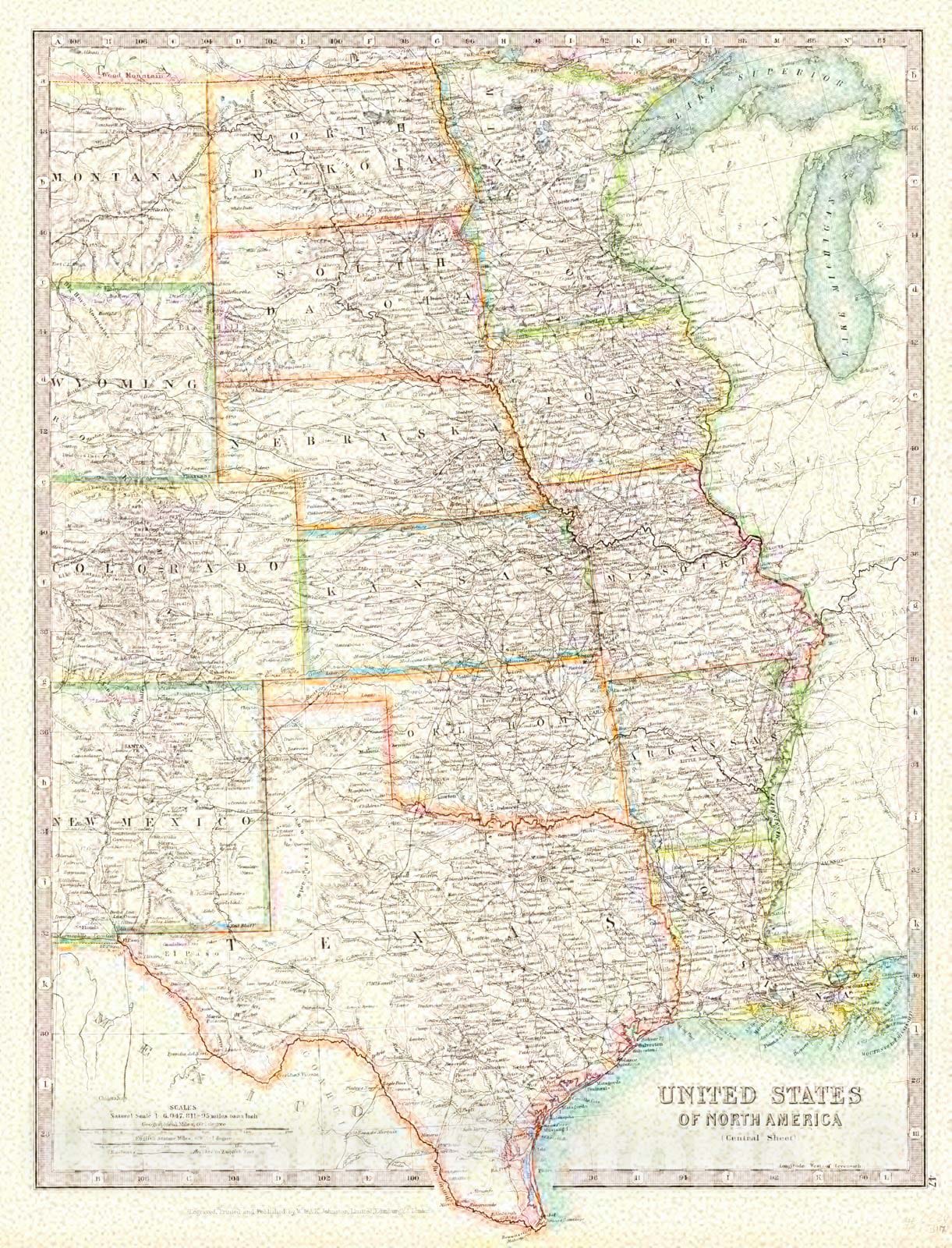 Vintage Map | 1910 United States of North America (Central Sheet) | Johnston, Keith