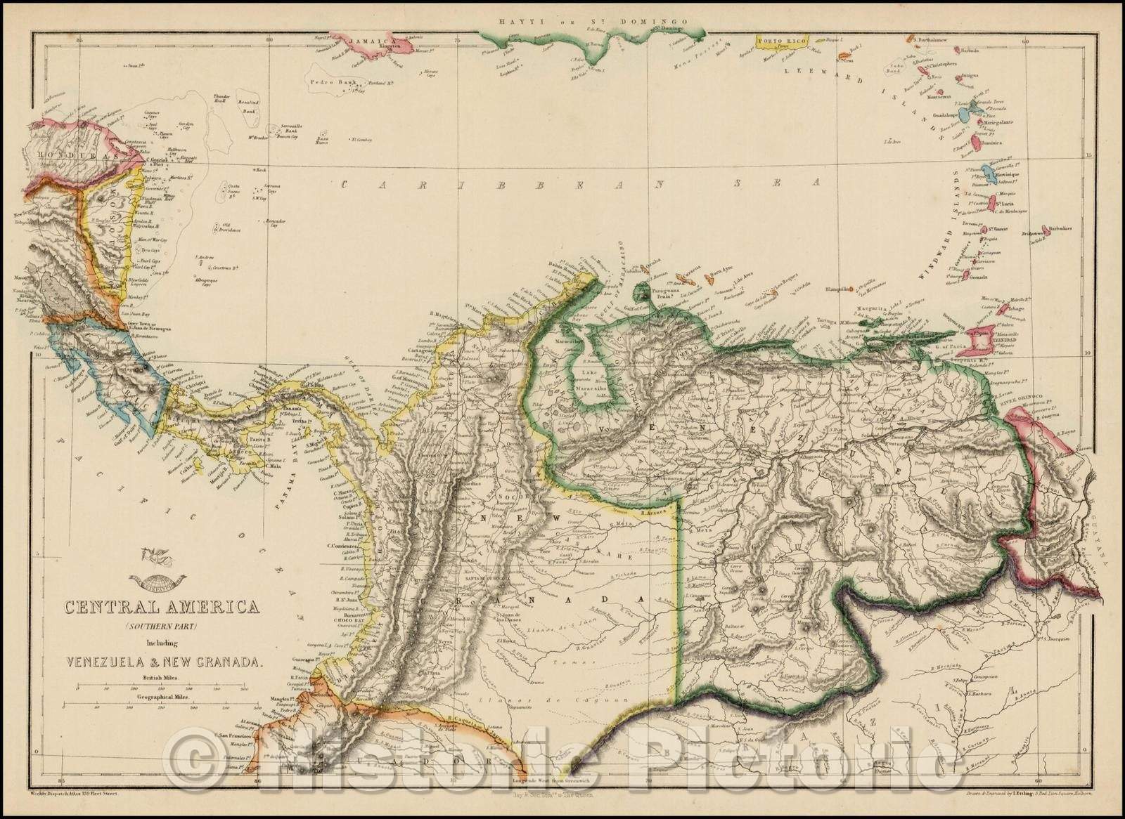 Historic Map - Central America (Southern Part) Including Venezuela & New Granada, 1860, Edward Weller - Vintage Wall Art