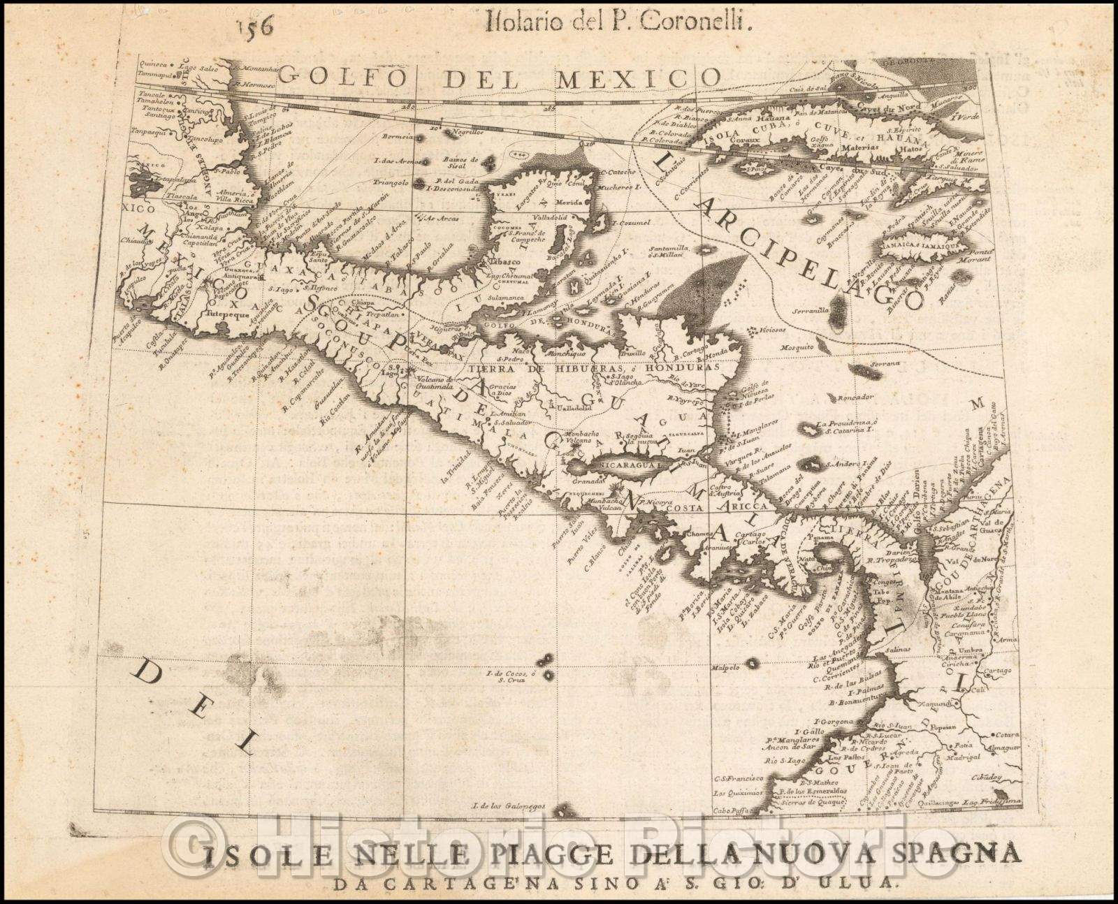 Historic Map - Central America, Yucatan, Cuba, Jamaica and Part of Colombia Isole nelle Piagge della Nuova Spagna de Cartagena sino a S. Gio, 1695 - Vintage Wall Art