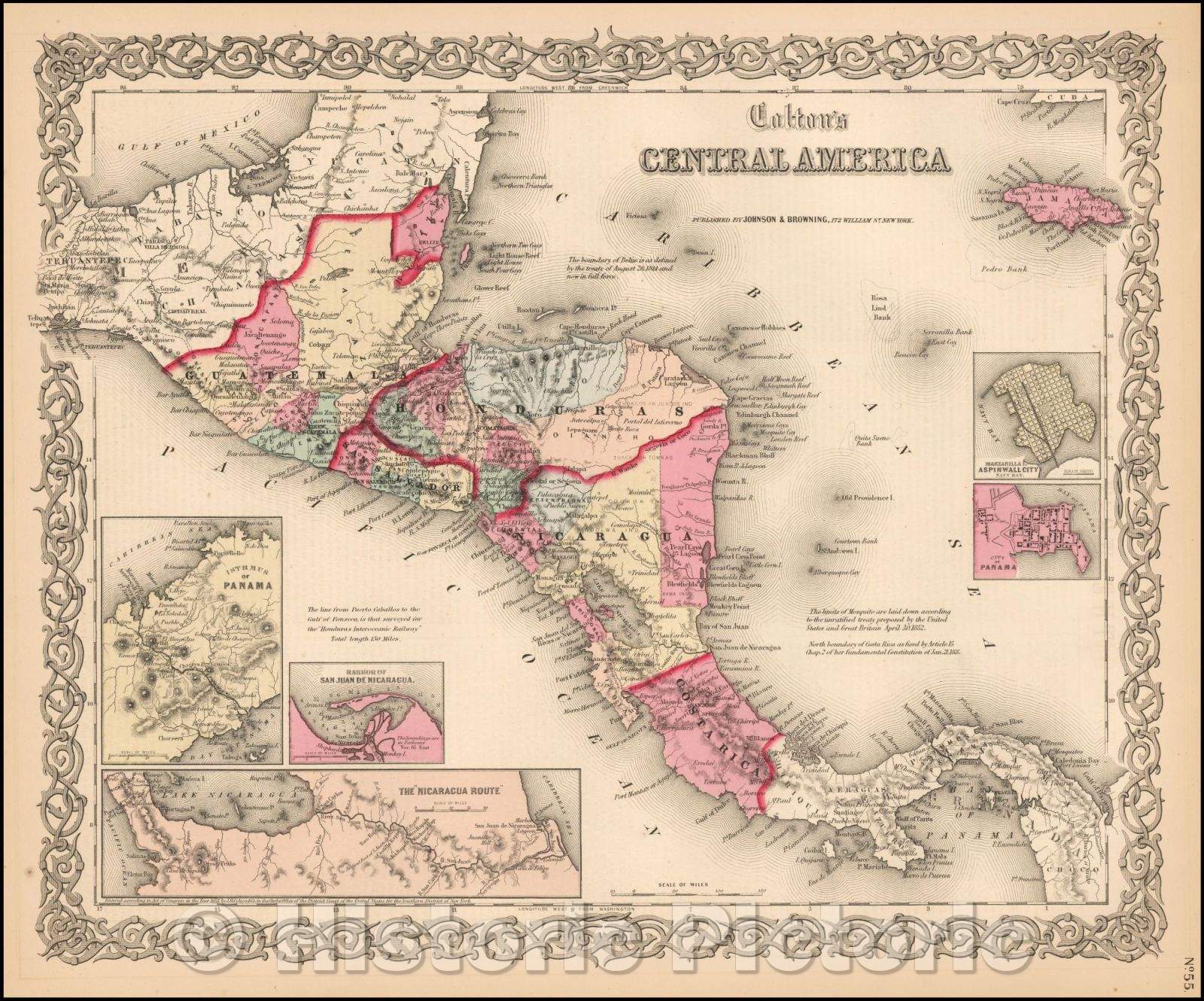 Colton's Central America, 1856, Joseph Hutchins Colton
