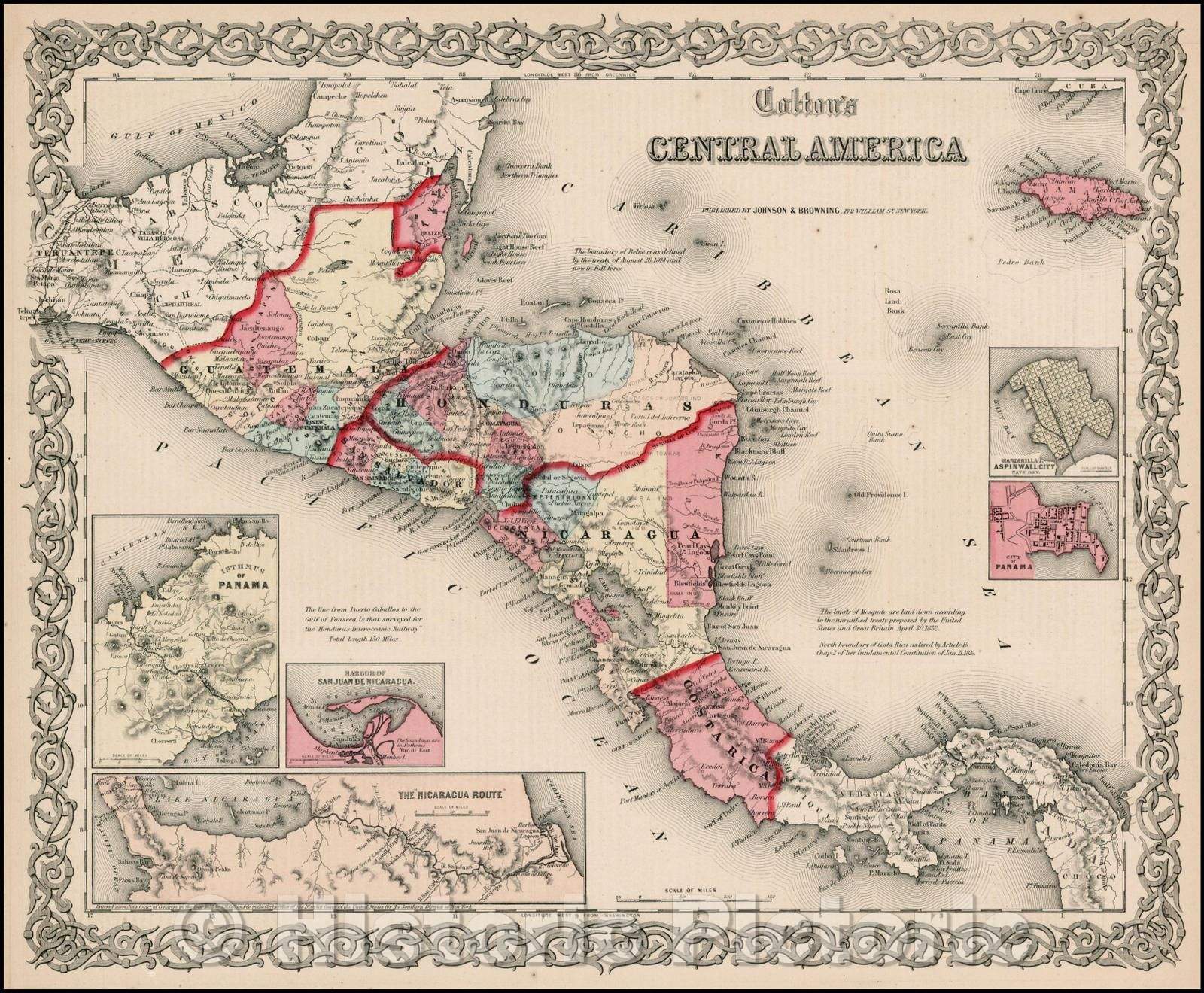 Historic Map - Colton's Central America, 1859, G.W. & C.B. Colton - Vintage Wall Art
