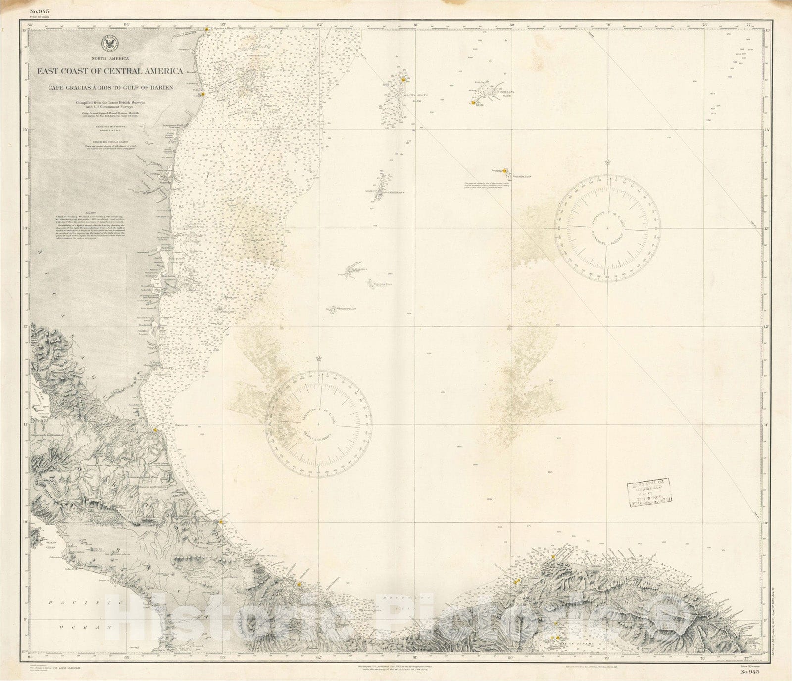 • .Historic Map : East Coast of Central America From Cape Gracias A Dios To Gulf of Darien Compiled From the Latest British Surveys, 1885, Vintage Wall Art