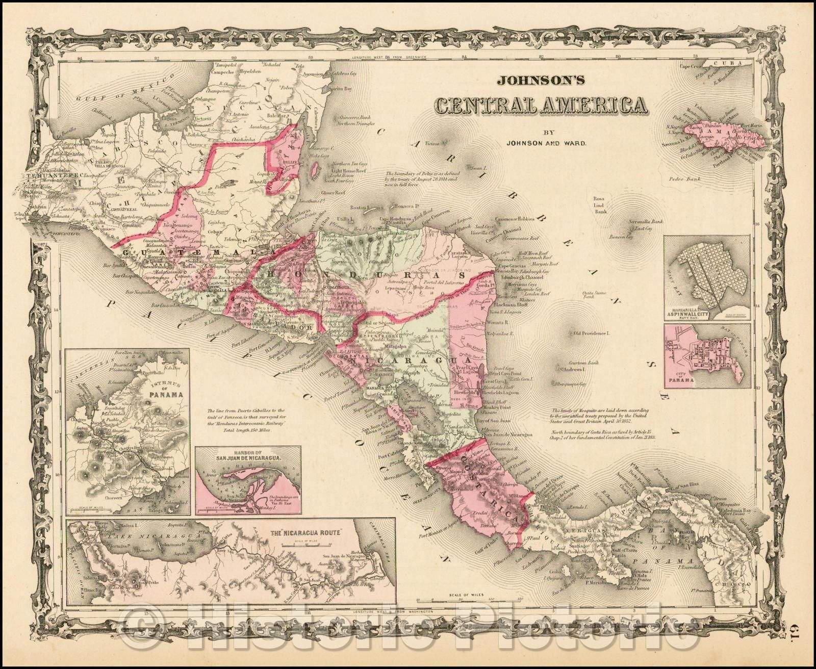 Historic Map - Johnson's Central America, 1862, Benjamin Ward - Vintage Wall Art