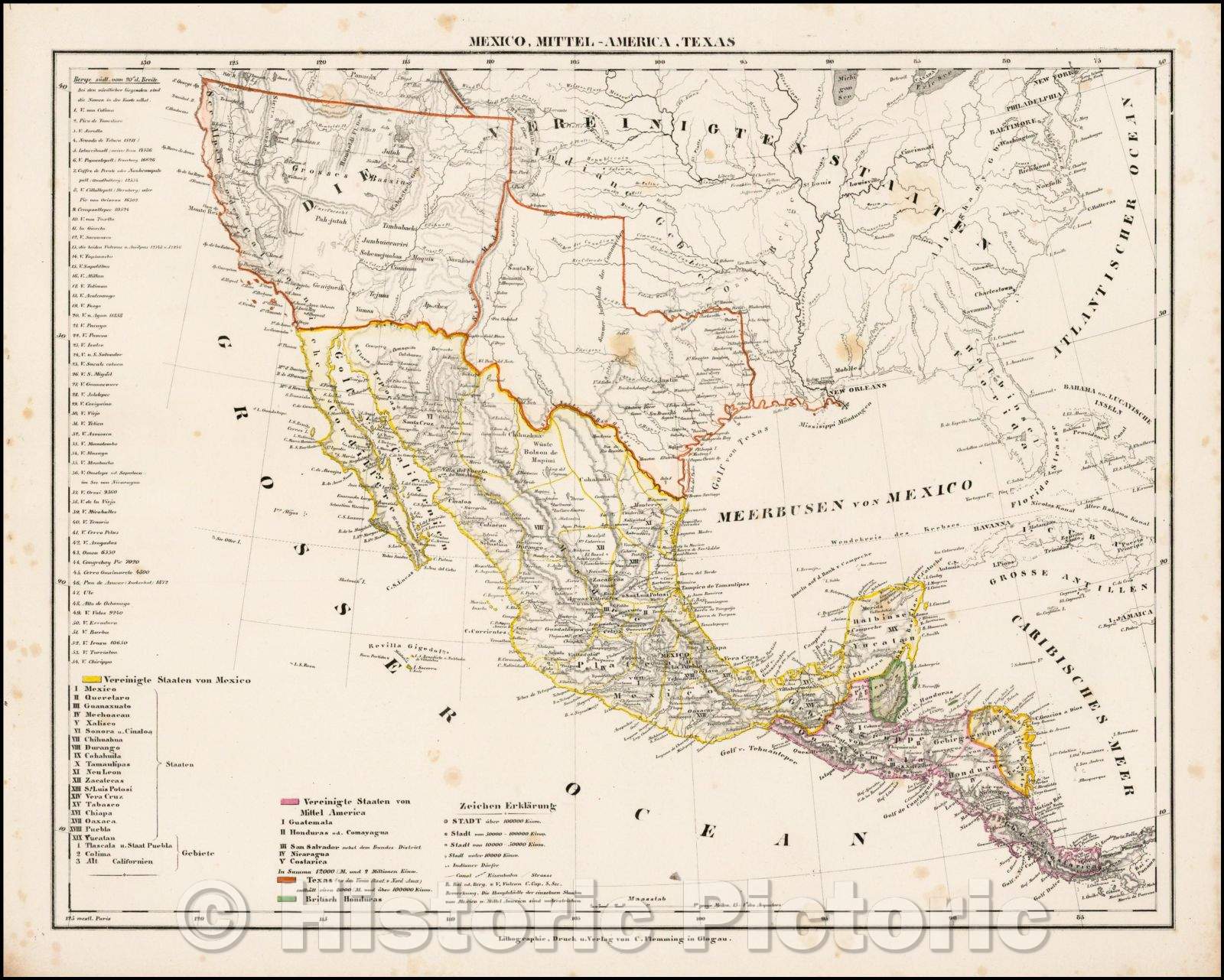 Historic Map - Mexico, Mittel-America, Texas/Mexico, Central America, Texas, 1846, Carl Flemming - Vintage Wall Art