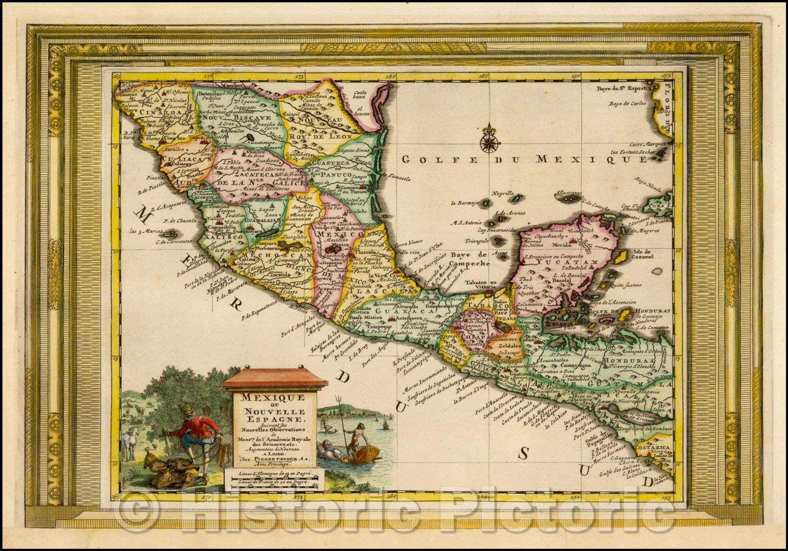 Historic Map - Mexique ou Nouvelle Espagne Suivant les Nouvelles Observations/Vander Aa's Map of Mexico and Central America, 1700, Pieter van der Aa - Vintage Wall Art