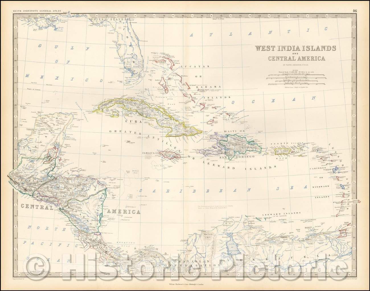 West India Islands and Central America, 1860, W. & A.K. Johnston