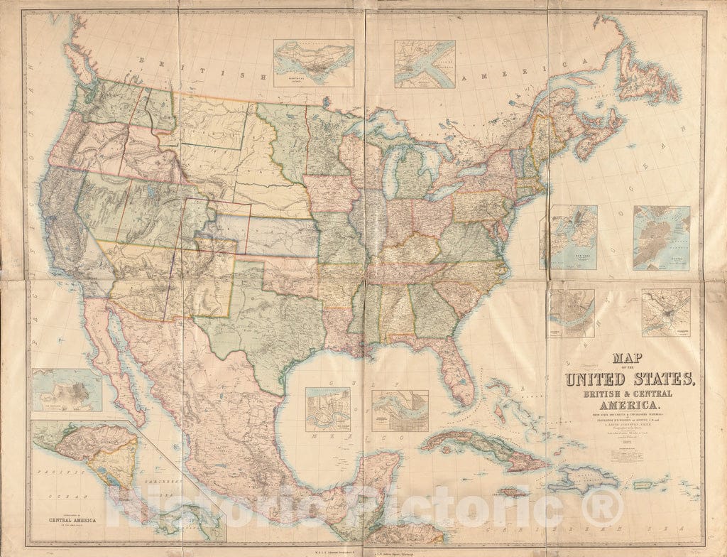 Historical Map, 1857 Map of The United States, British & Central America : from State documents & unpublished Materials, Vintage Wall Art
